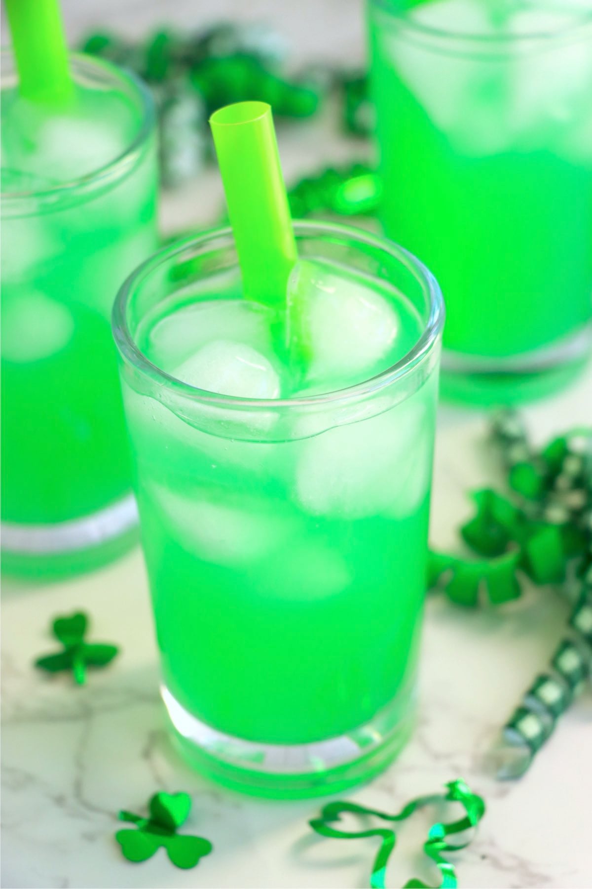 Serve it in fun glasses with festive St. Patrick's Day straws, or make clover-shaped ice cubes (I like to use this shamrock ice mold) for an extra touch of luck! The refreshing blend of sweet lemonade and tangy blue raspberry makes this simple drink one everyone will enjoy!